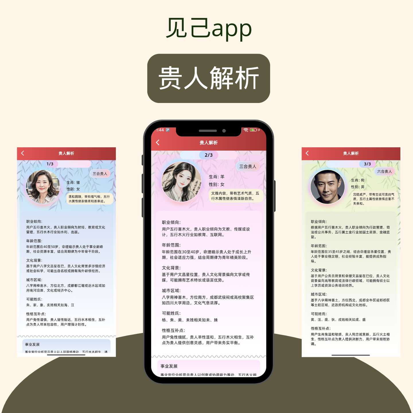 📲现在只需在 见己App 的「贵人解析」功能里看出来的。
