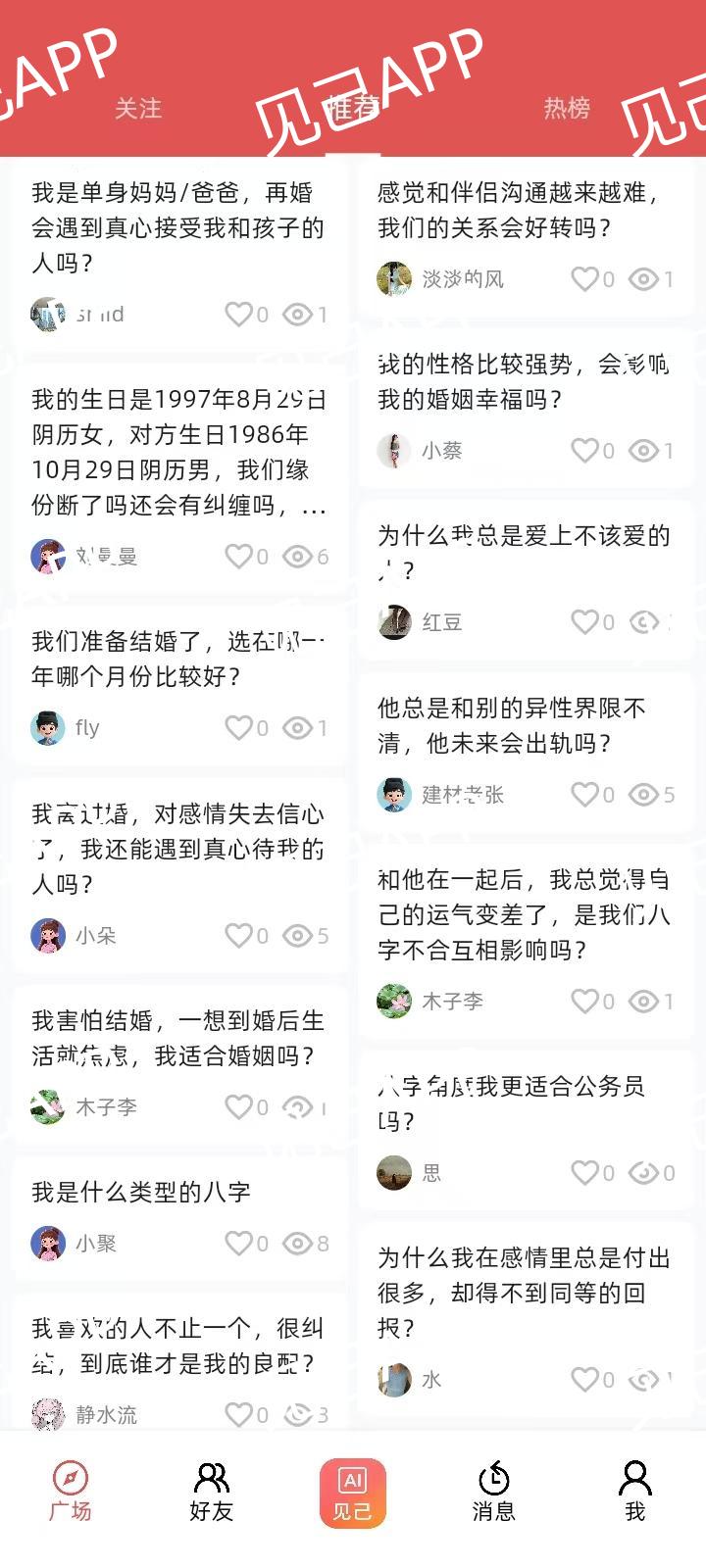 若用户五行缺火,且命局中火对应事业宫,AI 会优先引导 “事业方向选择”“职场运势提升” 等相关问题;若五行水弱且关联婚姻宫,AI 则会推送 “婚恋适配度分析”“感情矛盾化解” 等咨询主题。用户也可在 AI 引导的基础上,自主选择情感、事业、婚姻、财富等细分领域深入咨询,AI 会结合五行理论给出针对性建议。职场人小张说:“APP 根据我的五行推荐了事业咨询方向,里面的建议帮我避开了职场陷阱,太实用了!” 这就是见己 APP “五行定制化咨询引导” 功能的独特价值,让用户的命理咨询更具针对性。