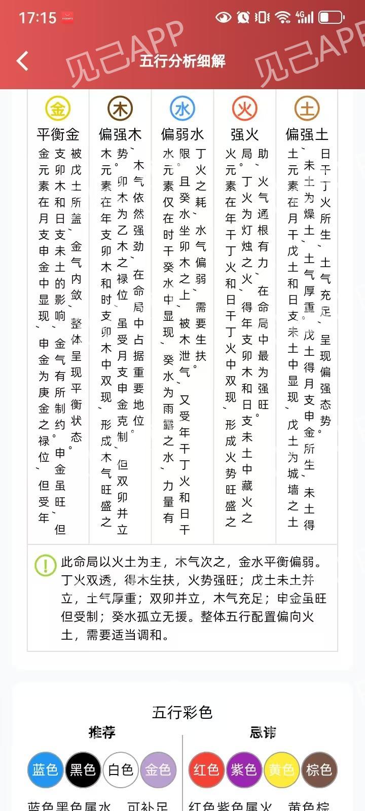 很多用户担心注册信息有限,五行测算会不够精准。其实见己 APP 的核心算法早已突破这一难题 —— 用户注册时填写的生辰、性别等基础信息,经过系统基于袁天罡四柱八字理论的智能拆解,结合大数据模型校准,能精准推演出生辰对应的五行强弱分布,明确五行喜忌。